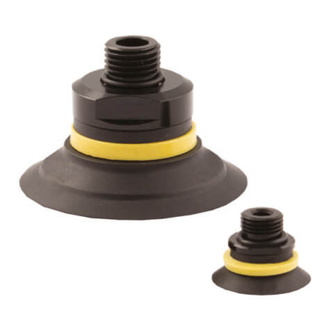 Kerek lapos tapadókorong, alkalmas vákuummal való megfogásra és mozgatásra, sík felületű tárgyakra, jó stabilitást és minimális elmozdulást kínál. A markolat síkjával párhuzamos erőhatású alkalmazásokhoz ajánlott, alkalmas üveg, fa, acél és műanyag lemezek mozgatására. A belső megerősítések megakadályozzák a vékony tárgyak deformálódását, és növelik a súrlódást a fogási síkkal párhuzamos erők esetén.